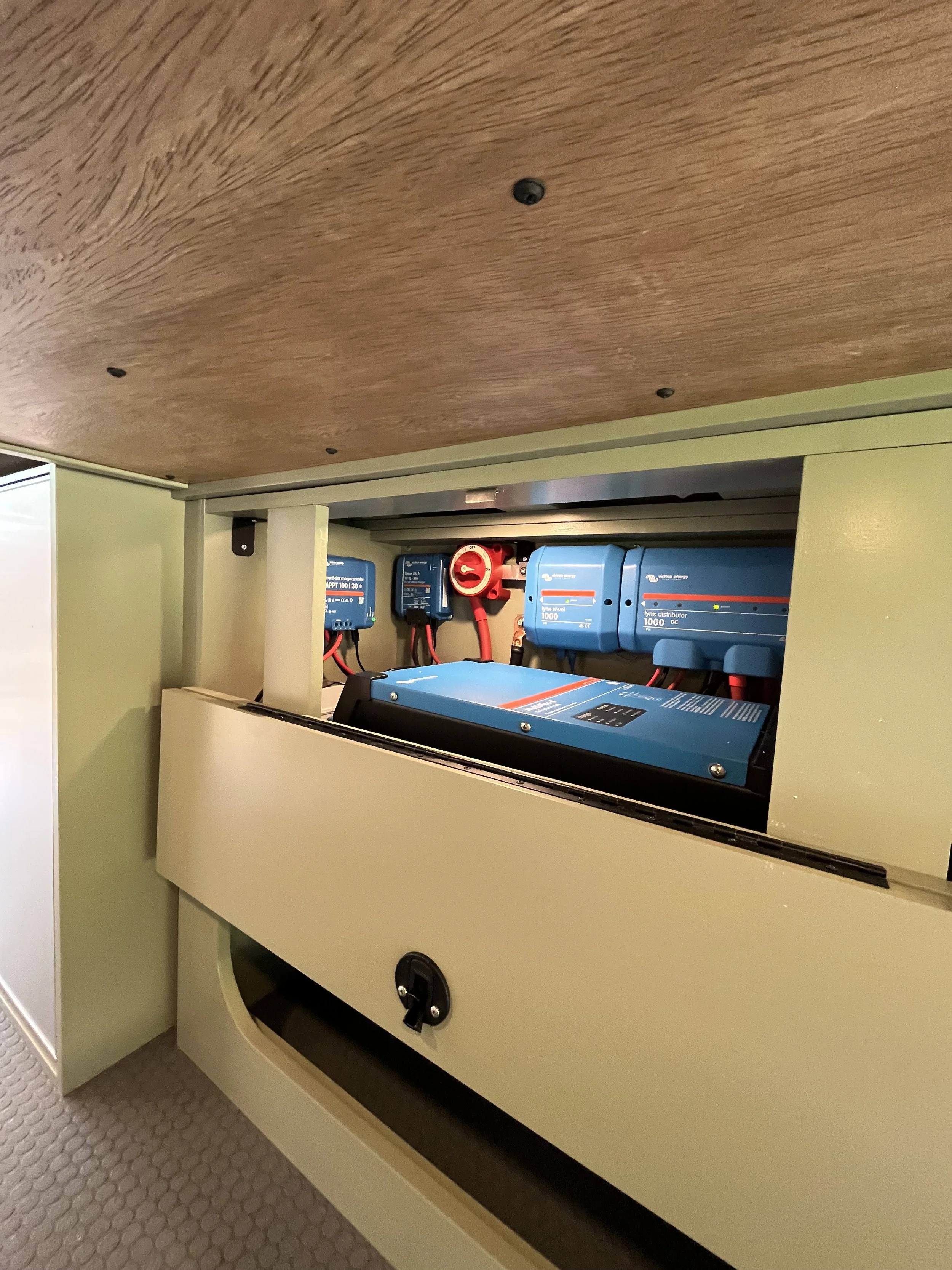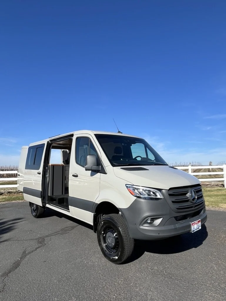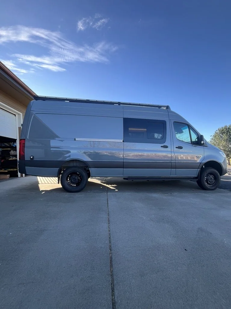Designed to accommodate both work and play, this lifted, 2019 170” extended Sprinter 4x4 is packed with a ton of features and functionality. Our client was looking for a van he could use to transport work equipment but also have the space to travel with his family of 4. This van features a lofted/removable, full-size bed platform, a U-shaped dinette that converts to a large queen-sized bed, and fold-down rear seating (while driving). This powerful Victron electrical system features 618 amp hours of LiFePo4 batteries, 2 x 30 amp DC-DC chargers, 30 amp MPPT solar charge controller, and a 3000 inverter/charger, which powers all the conveniences of home, including a Dometic RTX 2000 air conditioner, an Espar diesel air heater a 32” wall-mounted TV, 4k projector, 4-way Bluetooth speakers, induction cooktop, combo toaster/air fryer, an 85L fridge and 4 gallon Bosch hot-water heater. Outside includes a Fiamma awning w/ lighting bar, cedar roof-top deck, Deluxe MaxxFan, and 350 watts of solar. Please contact us for pricing on a similar build.